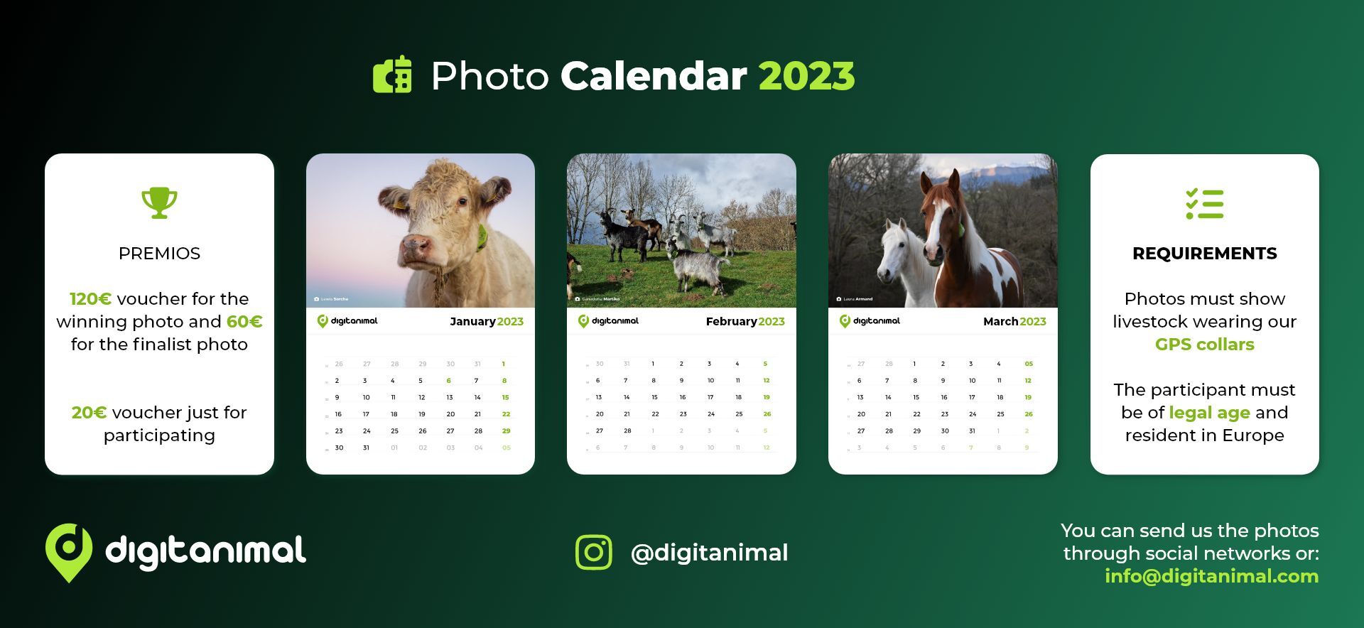 The calendar contest will be held during 2023 with the aim of selecting a winner each month. To carry it out, each of the months a reminder will be made through digitanimal’s social networks to encourage participation. And, on the other hand, the winners will also be announced in this way.